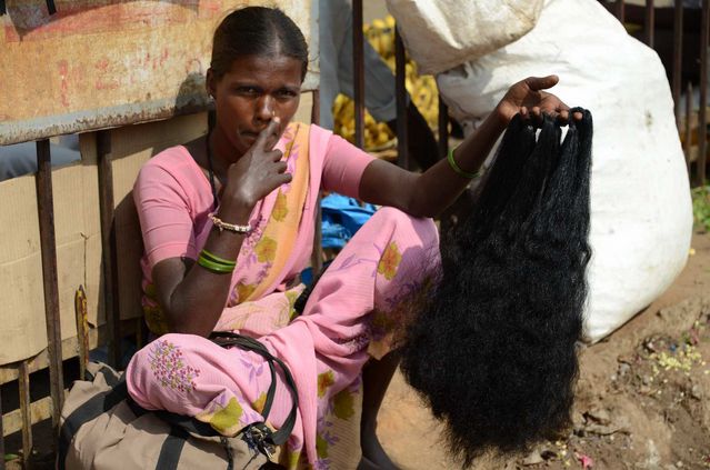 Bangalore : femme vendant des cheveux